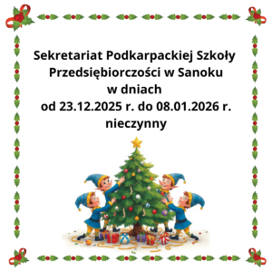 Sekretariat szkoły w dniach od 23.12.2025 r. do 08.01.2026 r. nieczynny